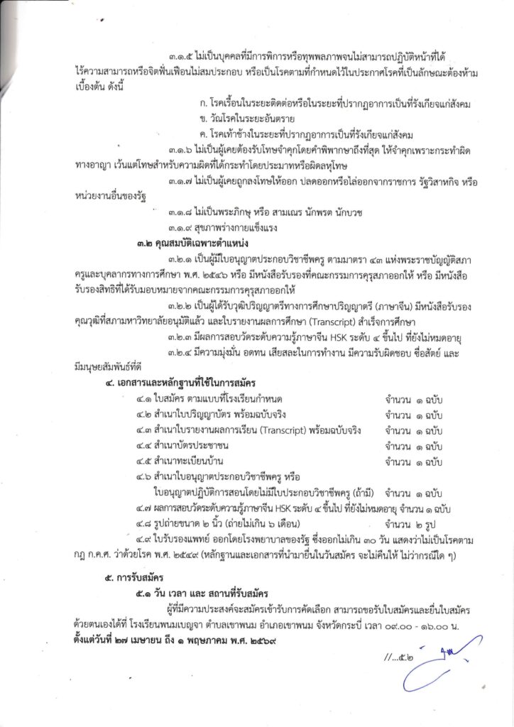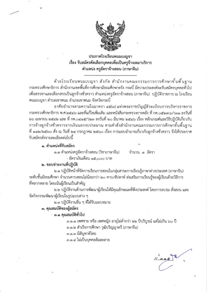 ประกาศโรงเรียนพนมเบญจา เรื่อง รับสมัครคัดเลือกบุคคลเพื่อเป็นครูจ้างเหมาบริการ ตำแหน่ง ครูอัตราจ้างสอน (ภาษาจีน) รายละเอียด ดังไฟส์แนบ